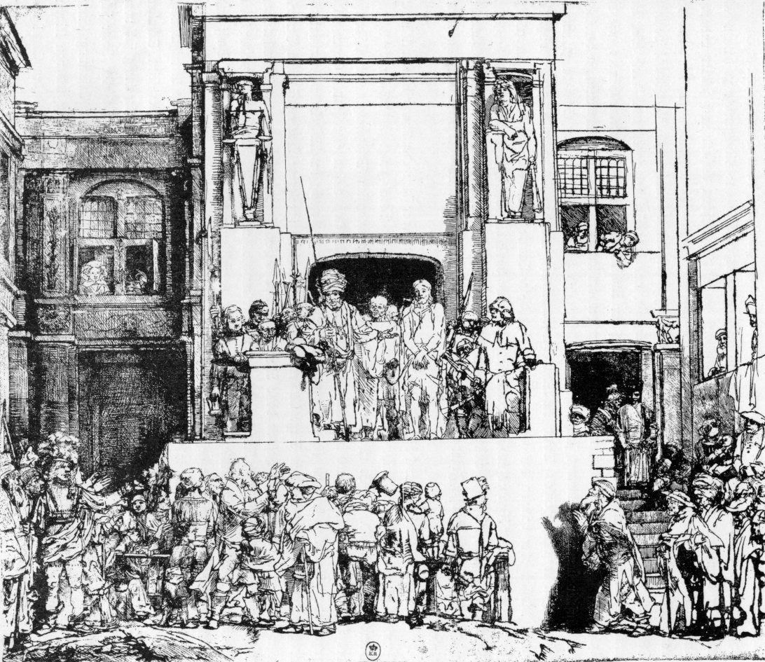 Rembrandt; Was für ein Verbrechen hat er denn begangen; Radierung 38,3 x 45,5 cm; Zustand III(8); Zustand VII und VIII signiert und datiert: Rembrandt f. 1655; Amsterdam, Rijksprentenkabinet