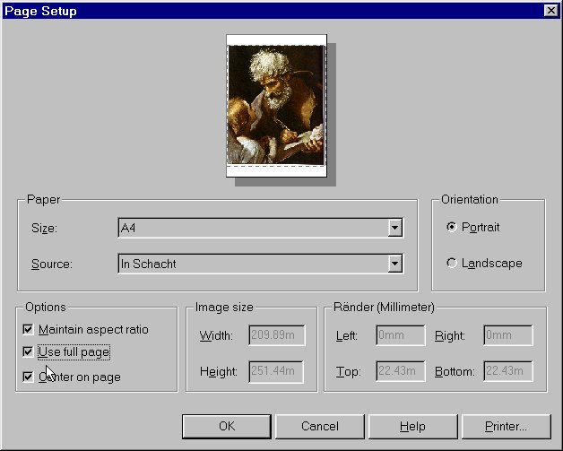 Optimieren Sie den Ausdruck mit „Portrait“ oder „Landscape“, mit „Use full page“, „Maintain aspect ratio“ und „Center on page“.